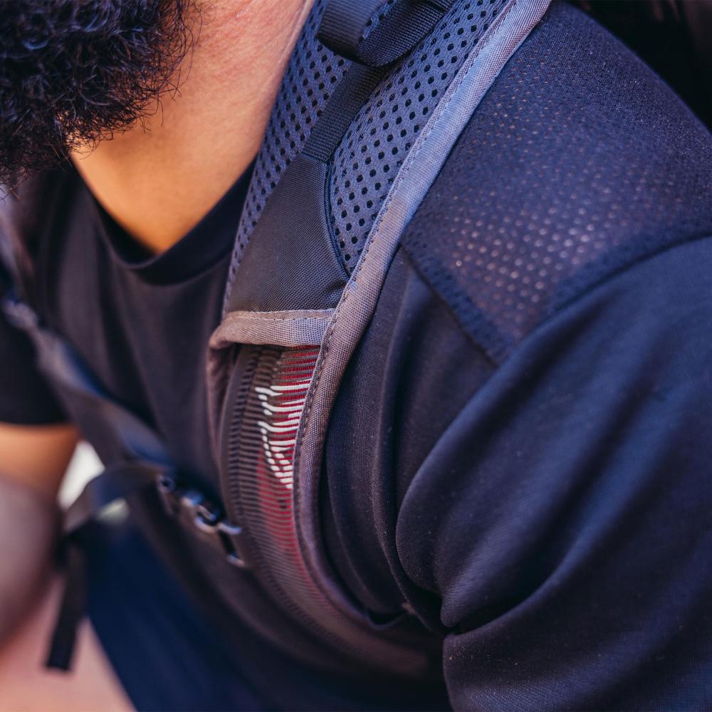 - Padded shoulder straps with breathable mesh