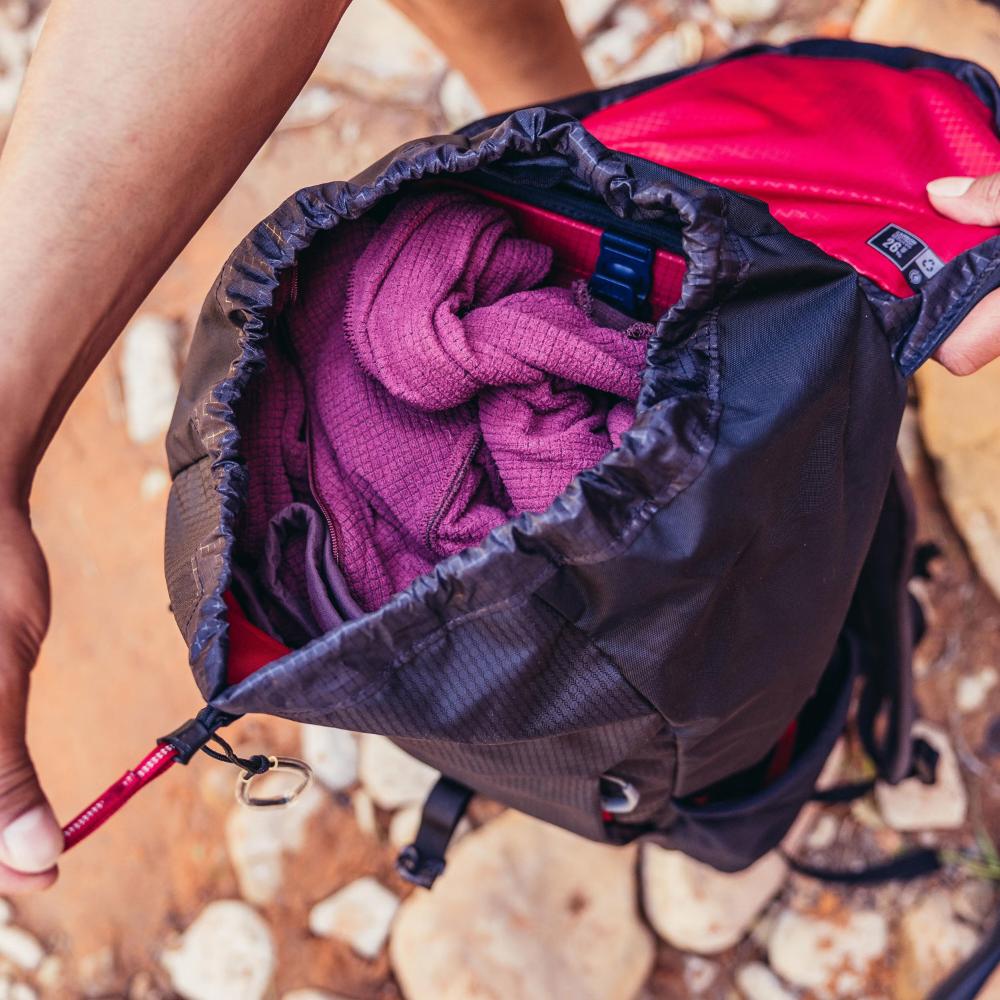 Top loading, alpine inspired design with quick access front pocket and a clean single buckle design made for lightweight excursions, ease of use, and good style.
