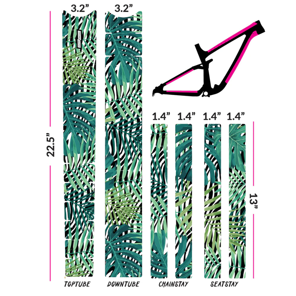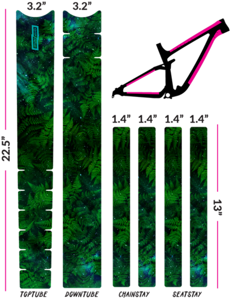 - Universal kit designed to fit all bikes and sizes. Comes with 6 easy-to-trim pieces for toptube, downtube, chainstays, and seatstays.