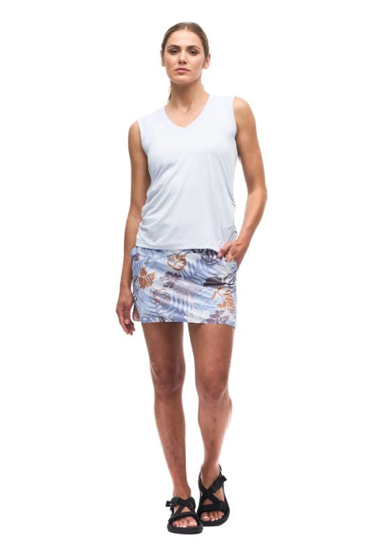 The ASTRID sleeveless top is made of Quick Dry Knit, a light mesh fabric with a Polygiene® finish. Polygiene permanent odor control stops growth of odor-causing bacteria on fabrics, so you can wear more and wash less. You can also change the length of your top with the side drawstring adjustement for the style you're looking for. These features make this top versatile, great for travel and various outdoor activities.