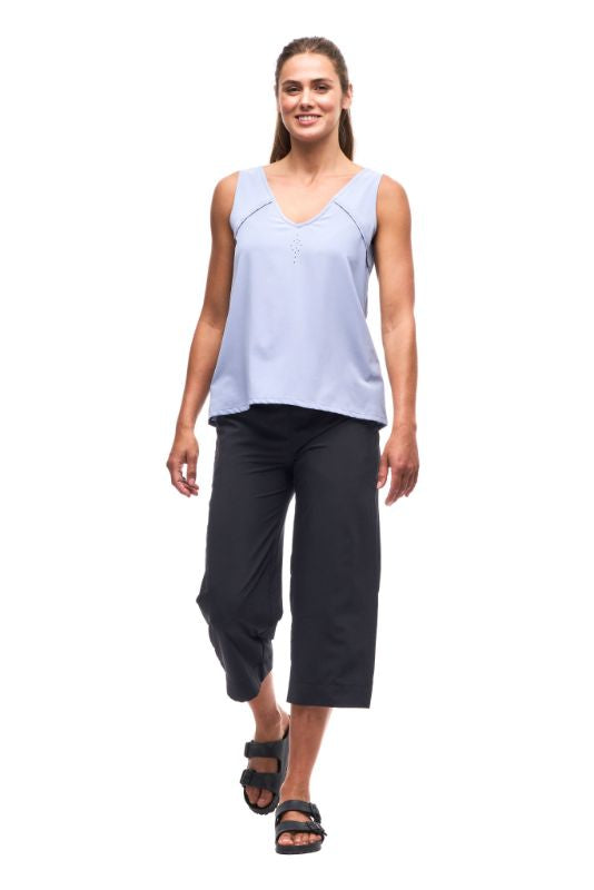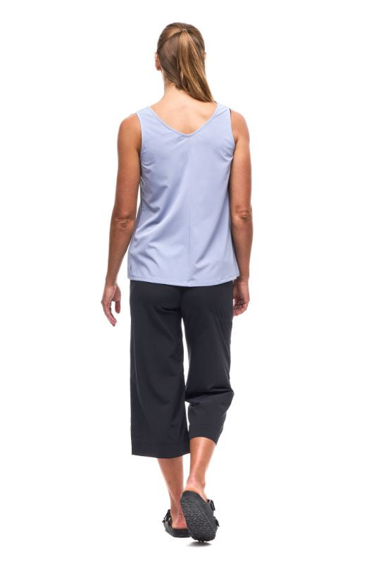 The HALKA ll sleeveless shirt is made of light woven fabric that offers comfort, lightness, softness and stretchability. The fabric dries quickly, has moisture wicking properties and has a UPF rating 30+. These features make this top versatile, great for travel and various outdoor activities.