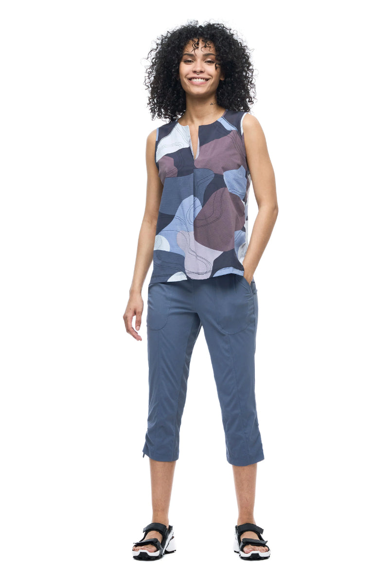 A high waist capri made of woven stretch fabric that is light, strong, and 2-way stretch and offers ease of movement, dries quickly, and wicks away moisture. The Women's Indyeva Nakato IV pant has an elastic waistband with drawstring adjustment, two front hand pockets, and a secure zipped pocket at back. These features make these pants versatile and great for hiking, travel, and various outdoor activities. Made from OEKO-TEX-certified nylon fabric.