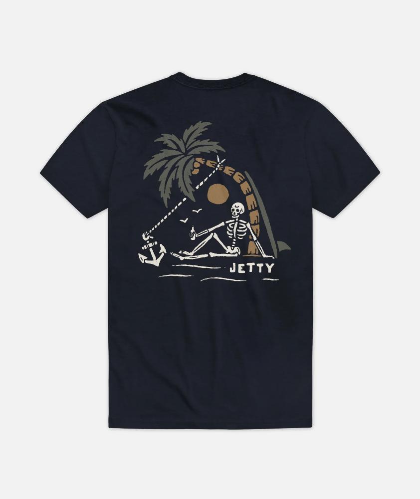 The Jetty men's No Man's Land Tee is made from soft cotton and features an iconic graphic on the back to be the ultimate summer tee.