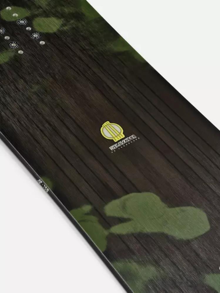 Named for its intended use, the K2 Excavator specializes in digging deep trenches on groomers and displacing powder after a storm cycle. Built around a wider perimeter, with a dual radius sidecut, the Excavator is unisex in approach. The Excavator's wider profile allows riders to size down around 5cm from their usual length without sacrificing performance, and it's extra width and 20mm taper benefits riders with larger feet, reducing toe drag on deep carves and long traverses. A combination of a smooth-flexing S1 core and tail to tail ICG™ 10 Biax Glass keeps the Excavator responsive and damp underfoot. K2 also added pre-cambered Carbon Power Forks™ to allow for an energy boost in and out of turns and those spontaneous "Slow Sign" ollies. The Excavator is packed with tech to keep you playful and floaty when powder is on the forecast.
