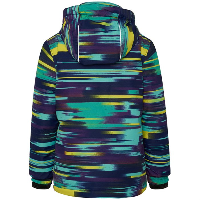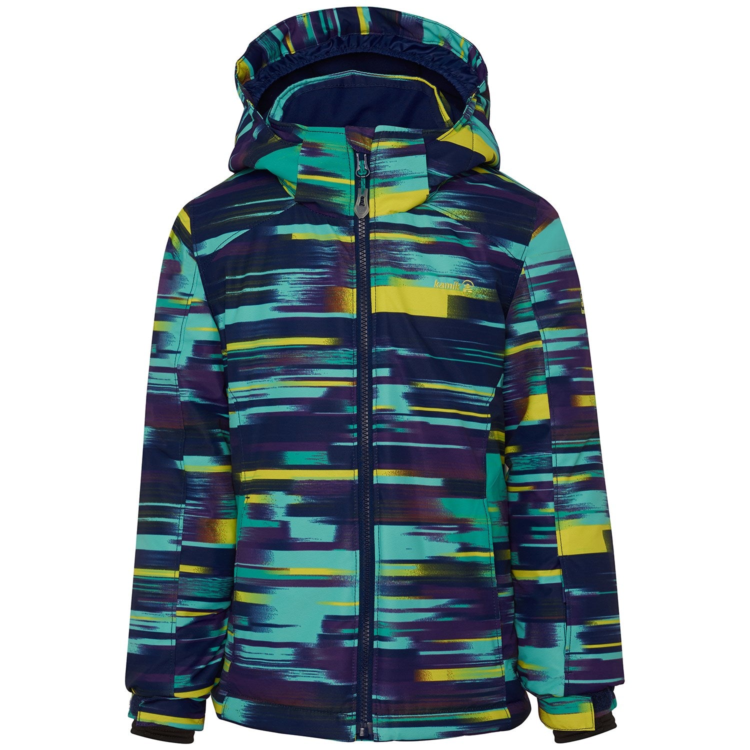 Your kids will be ready for all the cold-weather adventures they can handle in the Kamik Kids Tallie Static Insulated Jacket. Crafted with multiple pockets to hold everything from their goggles to ski passes, a hand-warmer pocket, detachable hood and water repellant coating to help keep them comfortable all-day long. Slip on styling with a stand-up collar. Full front zip-up closure with a detachable hood. 3M reflective details for safety Snowskirt constructed with elastic. Fun geometric print is fabricated with a Bionic Finish Eco water repellent. Expandable long sleeves feature Spandex knit cuffs. Lined, zippered hand warmer pockets for those chilly days on the slopes. Pockets include a fine mesh goggle pocket, inner media pocket and Ski Pass pocket to keep everything safe while you are enjoying your time.