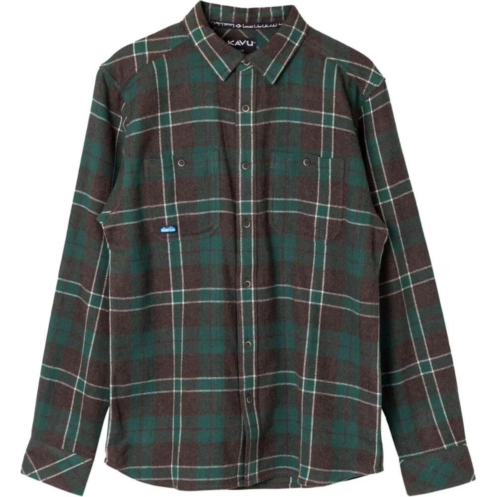 The Men's BIG JOE flannel by Kavu gives you the grit to look like a man who's cut his teeth on more than flap jacks. Its chest pockets give you room to store snacks and knick-knacks. And its casual fit, long sleeve, and stand collar can help you strike a nice profile in town. Maybe even affix that infamous top button when you're feeling avant garde? Anything's possible!