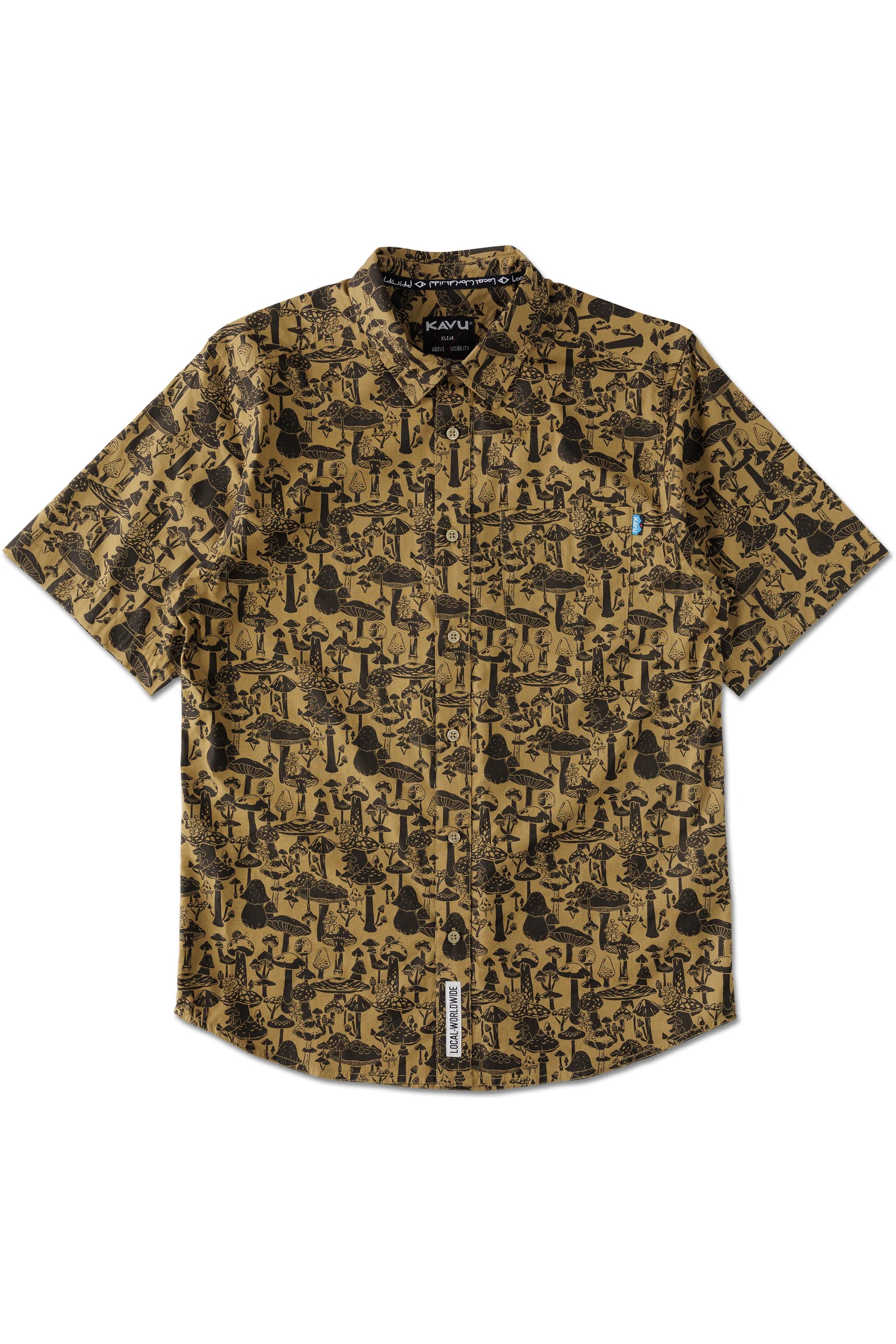 Obviously your friends know you can't stay in the house longer than a few days, but it doesn't hurt to remind them with the Kavu Men's Short-Sleeve Festaruski Shirt. A soft cotton fabric and fun allover print makes this button-down a symbol of your active lifestyle, whether you're at the airport or in the mountains.
