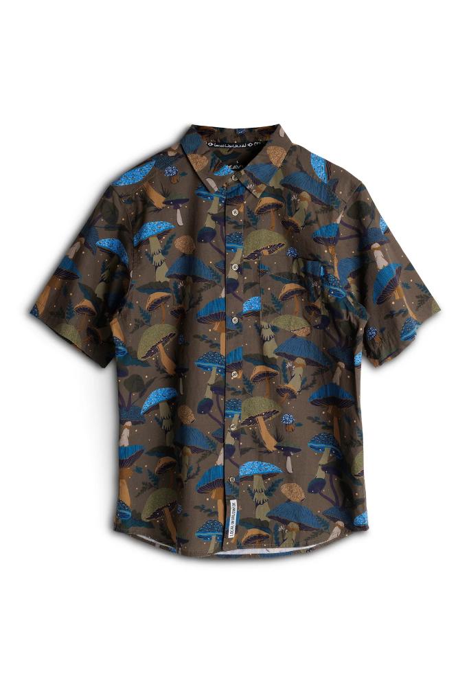 Obviously your friends know you can't stay in the house longer than a few days, but it doesn't hurt to remind them with the Kavu Men's Short-Sleeve Festaruski Shirt. A soft cotton fabric and fun allover print makes this button-down a symbol of your active lifestyle, whether you're at the airport or in the mountains.