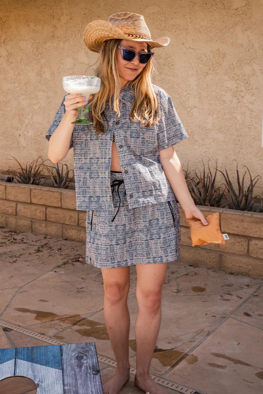 Perfect for a day on the river where the floatillas are full of love and good times. The Sea La Vie women's short sleeve shirt is a versatile and eco-friendly option for any outdoor activity. Made from recycled polyester and spandex, it provides both comfort and durability. With UV protection and wicking material, you'll stay protected and dry in any condition. This button-up shirt is a must-have for the KAVU lady who loves those endless summer days.