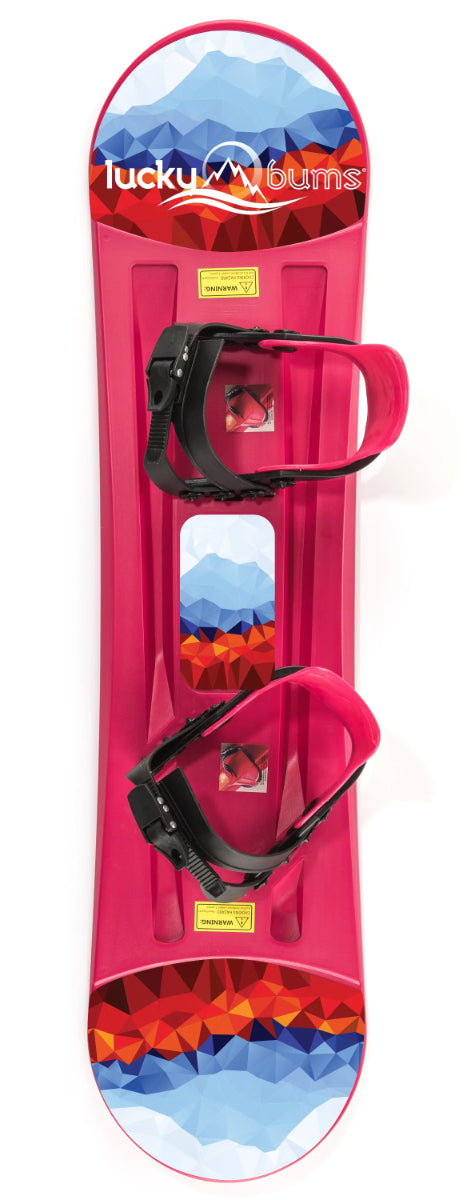The Lucky Bums Snow Play Snowboard is for kiddos and young adults who want to experience the thrill of boarding on the nearest sledding hill. No need to fight to stay in those cheesy sandal strap binding designs anymore! Their rugged design includes pre-mounted adjustable bindings that accommodate snow boots up to 6Y youth size. Lucky Bums' binding and smooth-bottomed board let the rider perform tricks usually only performed on expensive steel-edged boards.