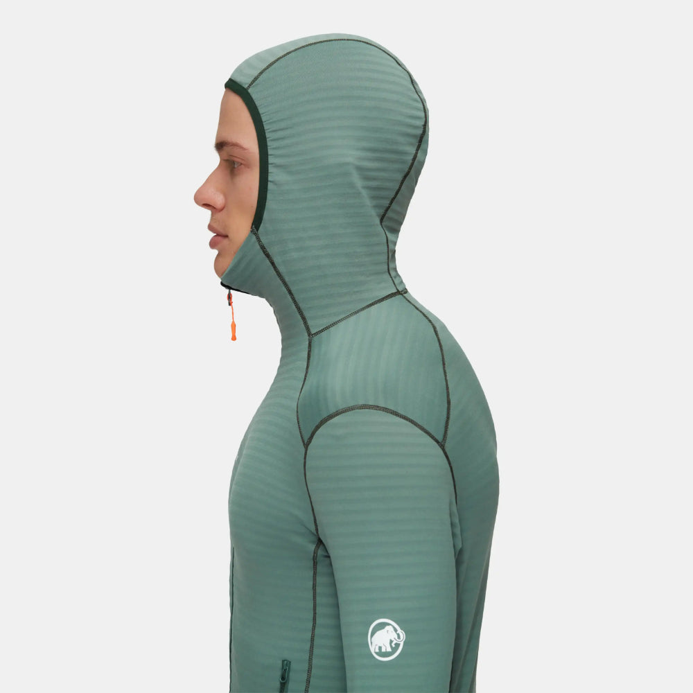 Mammut's Taiss Light can be worn any time of year and is perfect for all kinds of mountain activities. Medium-strength 4-way stretch fleece with high nylon content and shaped cut provide freedom of movement and abrasion resistance. The smooth outer material makes the jacket ideal for wearing under a hardshell layer. The material is breathable and dries quickly, while flat seams improve wearing comfort. The pockets are placed higher up to accommodate your climbing harness. Thumb loops and the tight-fitting helmet-compatible hood make the Taiss Light a highly functional, versatile mid-layer.
