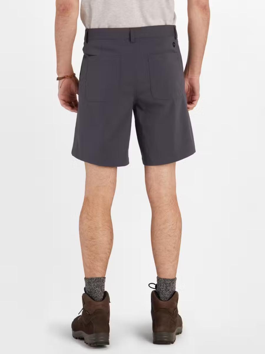 Belt loops are back on Marmot's stretchy trail favorites made for heavy use on the mountain and back home. Rock these technical, quick-drying 8" hiking shorts all weekend on the rocks and in the woods with everyday style that seamlessly transitions from hopping rocks to hopping on the commuter train. Abrasion-resistant recycled Nylon blend breathes easy when you're working hard and gives you a leg up when you're up against rough terrain. These active bottoms will fit right in wherever the day—or trail—takes you with durable stretchy performance, articulated knees, and water-repellent finish to ensure your comfort is with you for the long haul and that last push to the summit.