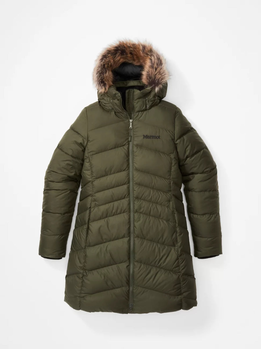 Cut an ultra-cool profile against your northern cityscape and stay warm and dry while you do it. The Marmot Women's Montreal Coat provides ample protection with its tough, water-resistant fabric and new high-quality, water-resistant 700-fill power down insulation; but what you'll love most is the numerous cushy linings, handy pockets, and the vibe that's just right for your busy, modern life.