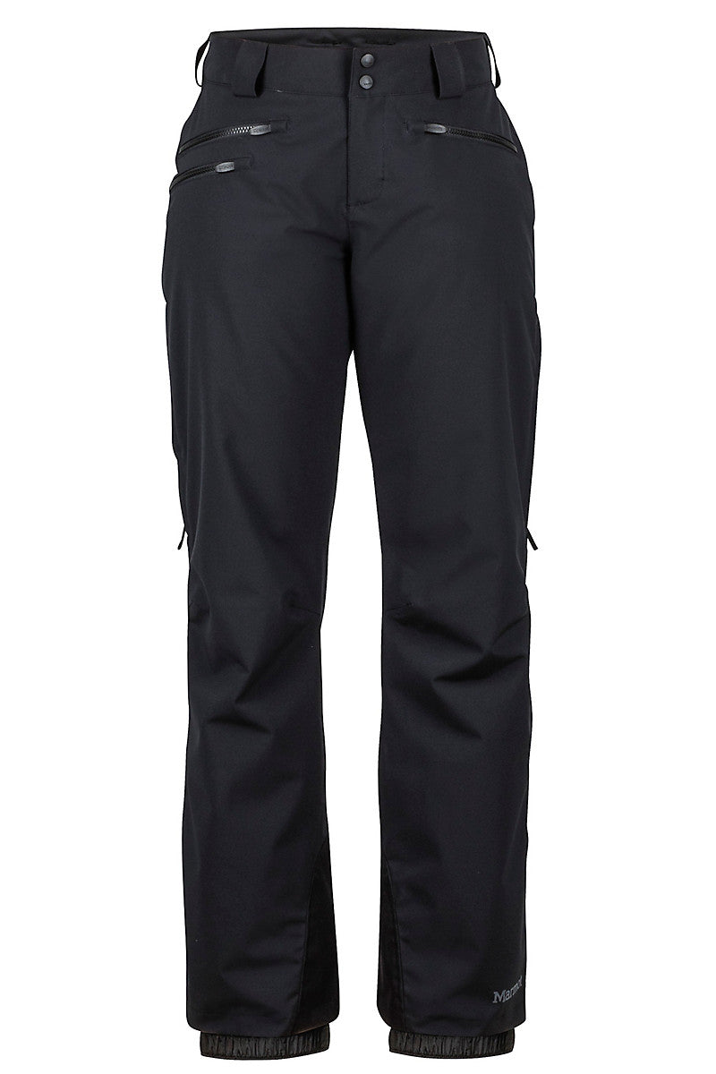 When the weather calls for deep powder on the mountain, bring out the snowboard and the high-performance Marmot Women's Slopestar Snow Pants. Waterproof/breathable Marmot MemBrain® fabric repels heavy rain and snow for hours, while the 100% taped seams also help keep water out. Moisture-wicking and breathable PrimaLoft® Black Insulation Eco keeps you warm and dry while still staying compressible. Zippered leg vents make it easy to transition in and out of boots while the internal gaiters, articulated knees, and Cordura® scuff guards mean a more comfortable trip up and down the mountain.