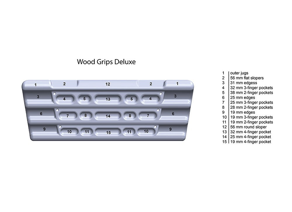 The Wood Grips II Training Board is a convenient way for climbers to test and train their grip strength. This skin-friendly wooden board features an assortment of holds including jugs, slopers, edges and pockets.