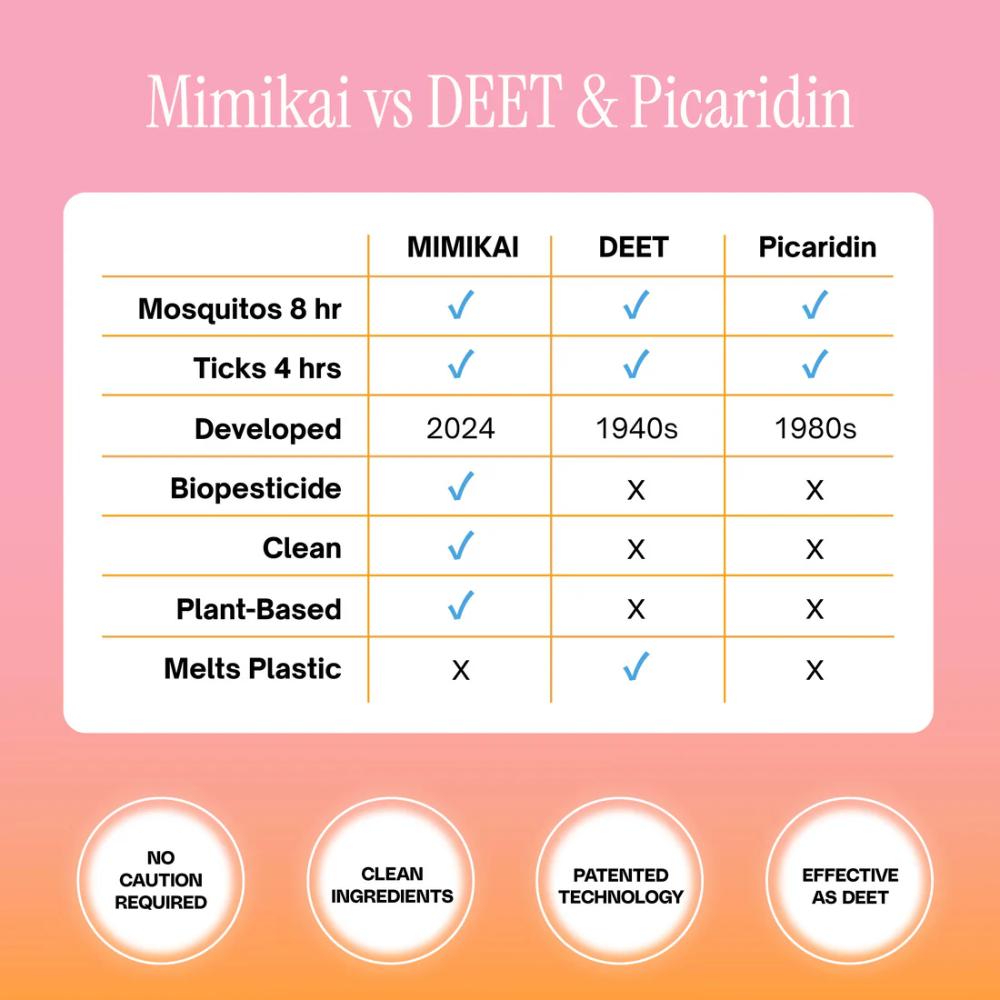Mimikai's tick repellent is a plant-based solution that has been scientifically proven to be as effective as DEET, and is EPA registered for protection against diseases such as Lyme Disease. This bug repellent provides full-body peace of mind while you're enjoying the outdoors.