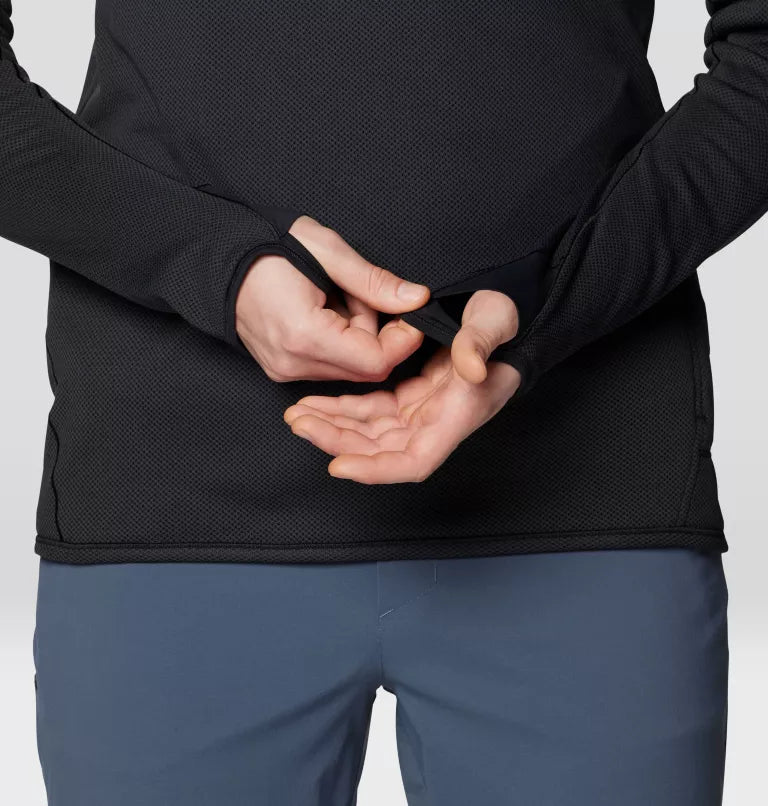 A single layer can have a bigger impact than you think. Our go-to, packable long sleeve houses the highest warmth-to-weight ratio of any fabric in our line, along with high breathability, conveniently comfy thumb loops, and a secure zip pocket for stashing essentials. This unique active mesh construction consists of hollow, tube-like fibers that absorb sweat quickly and efficiently—supporting insulation and heat-shielding properties to keep you temperature-regulated from the trail to the lift, and everywhere in between.
