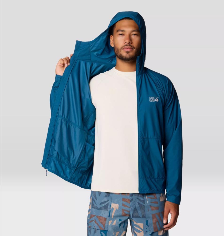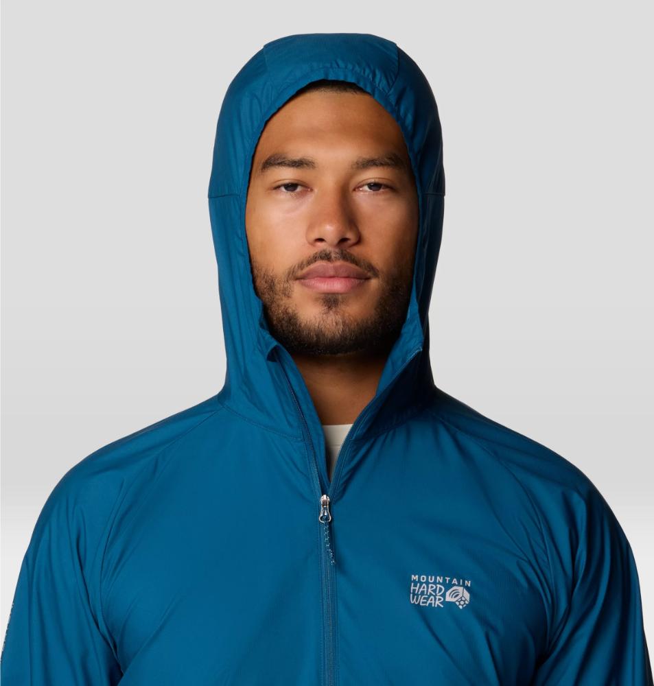 The men's Kor AirShell™ Hoody is made from lightweight, super durable materials. This packable layer stows in its internal pocket when the wind dies down.