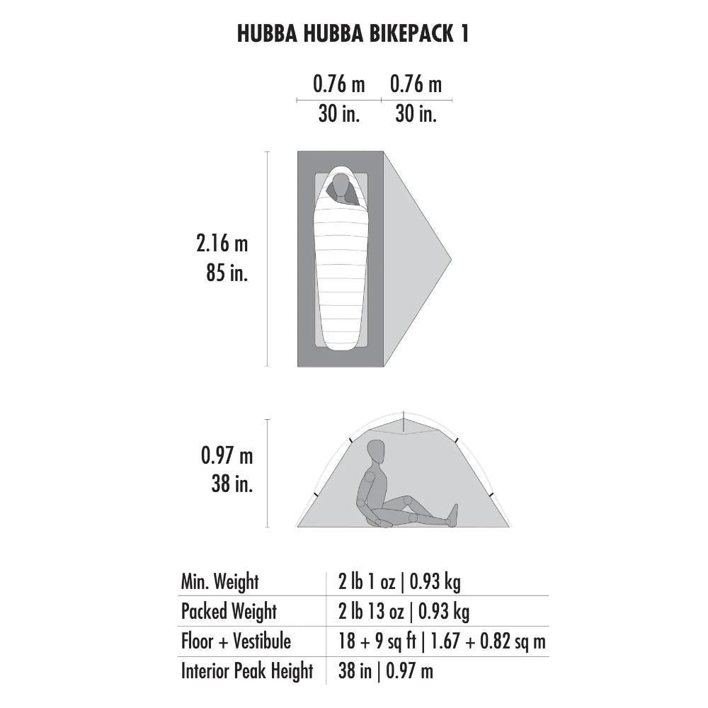 The Hubba Hubba Bikepack 1 is a three-season one-person tent designed to be attached to your bike's handlebars for two-wheeled adventures. The true-rectangular design offers ample headroom and plenty of comfort.