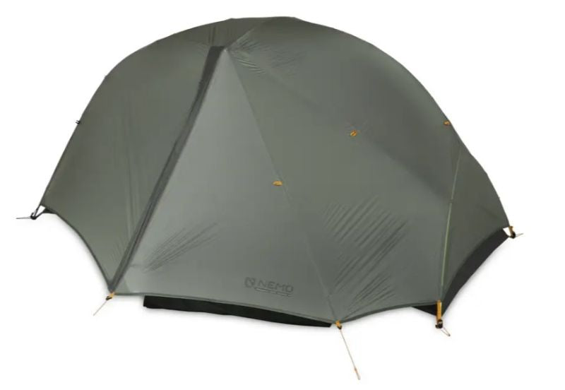 The Dragonfly™ Bikepack OSMO™ tent is tailored specifically for two-wheeled journeys, canoe trips, and other excursions where its ultra-small pack-down size will make a huge difference. Now made with our composite OSMO™ fabric, this ultralight shelter promises excellent water repellency that lasts 4x longer and resists stretch when wet. Designed with shortened pole segments, it stows easily in a stuff sack that's been optimized for bike travel with tiedown straps to eliminate wobble. With the adjustable straps, it can securely fasten to handlebars, a rack, or a frame. The tent itself features a tapered floor plan to save weight without sacrificing livable space, and a tub floor design to increase privacy and weather protection. Each asymmetrical vestibule keeps gear tucked out of the way, and our Landing Zone™ waterproof storage tub offers a protected, mud-free dumping ground. Thoughtful new details include an overhead, diffusing Nightlight Pocket™ and integrated Gatekeeper™ door tiebacks, while an internal daisy chain, gear loft, and gear pockets offer plenty of storage and org. Backed by NEMO's Lifetime Warranty, this tent soars above the competition and keeps your journey smooth.