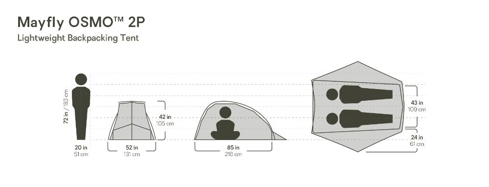 The Mayfly Osmo 2 person backpacking tent is super lightweight and made with durable materials to be a reliable home-away-from-home on many adventures to come.