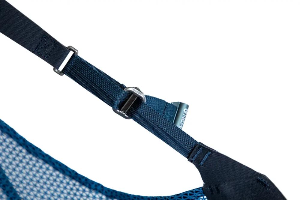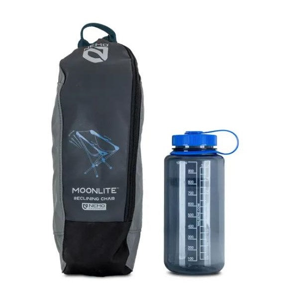 Moonlite™ brings comfort to the backcountry — and backyard, beaches, and more. Easy to set up and barely noticeable in your pack, it's the go-to adventure chair that boasts a major bonus: adjustable reclining support. Moonlite has a unique pulley system built into the armrest straps that allows you to easily adjust your sitting position on the fly. Simply pull on the custom buckles and lean back to go from upright at dinner to stargazing after dark. (Pull again while sitting up to return to upright support.) The chair's engineered frame uses oversized tubes paired with forged aluminum hubs to create exceptional strength and stability despite the chair's light weight. Its custom-engineered mesh seat stretches to accommodate and support a variety of body types, offering seamless and supportive comfort. This unique seat attaches to the frame with satisfying ball-and-socket connectors that rotate and align with your body to avoid any uncomfortable pressure points. True to Nemo's mission of sustainability, Moonlite uses 100% post-consumer recycled materials for the webbing and mesh, while the reclining hardware and seat mesh are bluesign® approved.