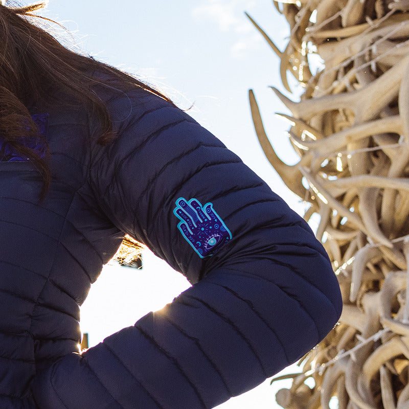 Ward off rips, tears, and negative energies with this lovely hamsa patch. Powerful protection for your gear while you're hiking, biking, camping, or out on the town.