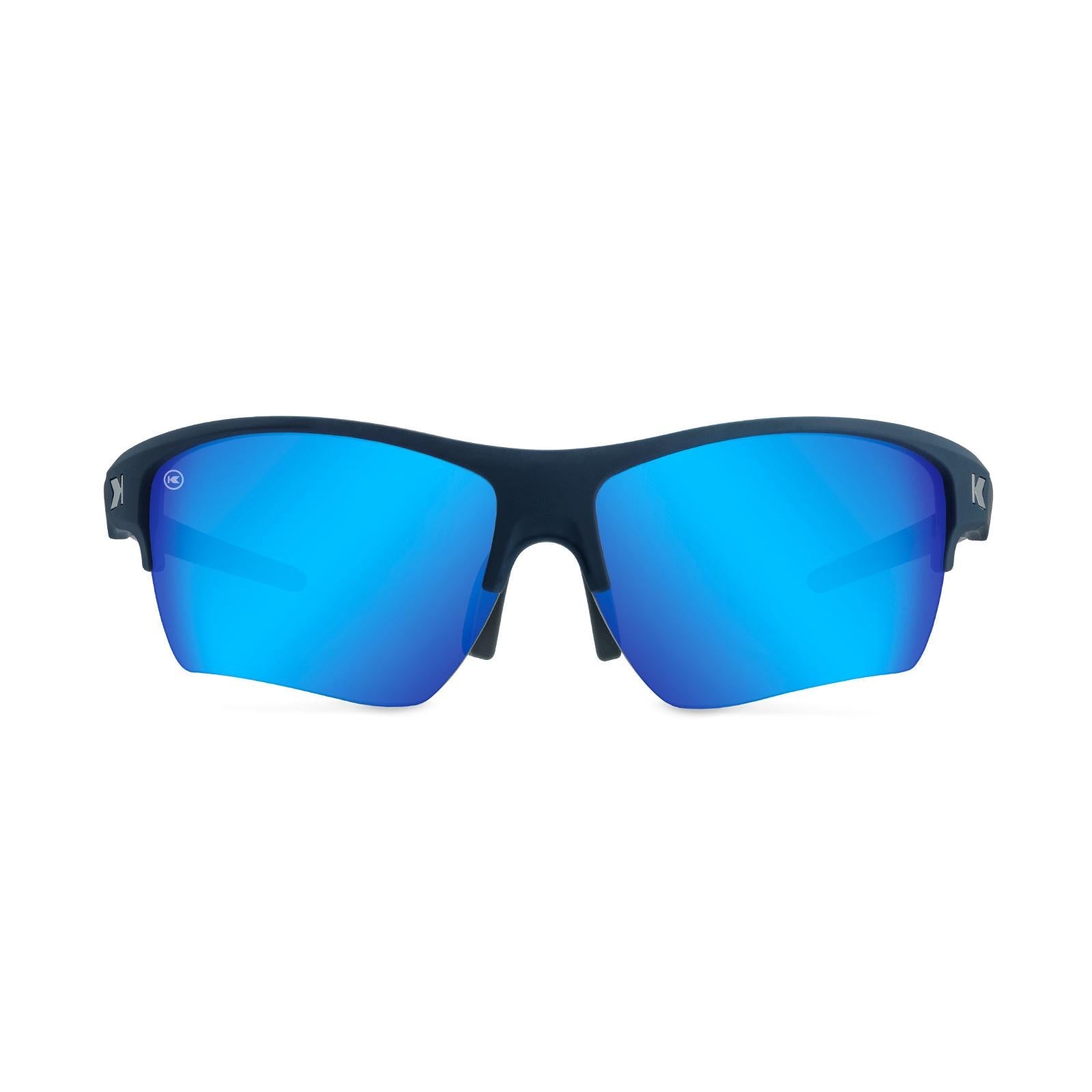 - Matte navy blue wraparound frame