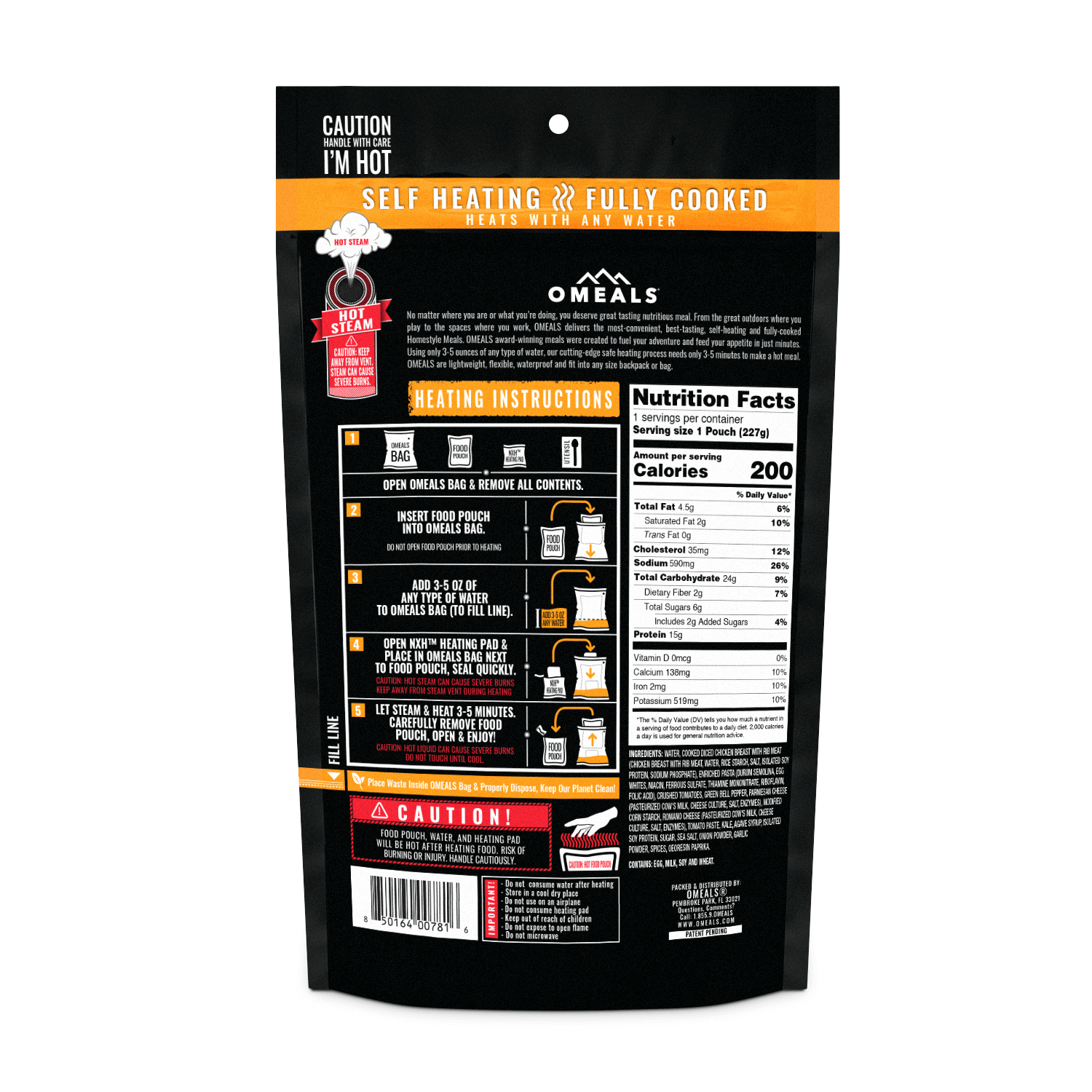 A Italian-American Classic, "Forget about it!" Delicious Chicken pasta in a parmesan sauce, with peas. Omeals brings the Italian restaurant with you as you're on the go or embarking on adventures. Their heating technology ensures you have a hot meal anywhere! OMEALS®is powered by NXH®; Heating Technology. Tested and certified non-toxic, odorless and safe to use in confined spaces