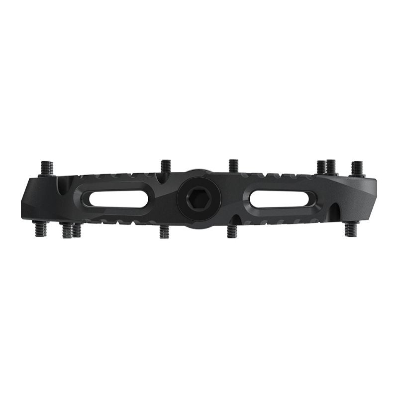 The OneUp Composite Pedals features a huge (115x105mm) super grippy platform with 10 rear-loading steel pins per side to keep your feet planted on even the roughest of trails. With a weight of only 355g, they won't slow you down on the climbs. Designed from stealth rubber down and shaped with a subtle convex profile to provide you with more grip thanks to the pedal sitting in the natural arch of your foot. The thin leading edge chamfered design gives you maximum clearance to reduce pedal strikes and deflect off trail obstacle.
