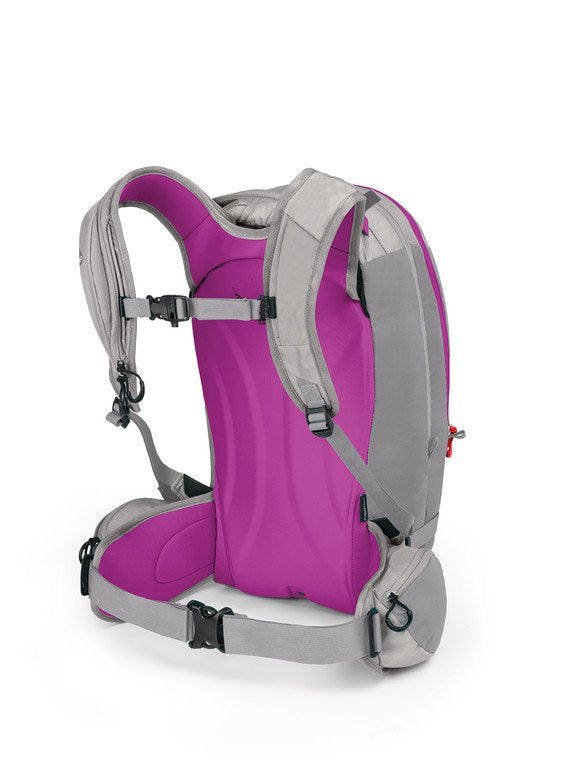 Designed for backcountry skiers and boarders, the Osprey women's specific Kresta 20 is the perfect size for spring backcountry tours or lift-accessed tours off the ski area. Thermo-formed backpanel and contoured shoulder straps provide comfort and keep the pack stable when you're ripping the steep and deep. A zippered panel allows easy access to all your gear while another large J-zip front panel pocket stores your avalanche probe and shovel for quick access when you want to dig a snow pit and assess conditions. There's also a built-in back pocket for a hydration reservoir that routes through the shoulder harness to prevent freezing. On the outside of the pack, you'll find straps for multiple ski and snowboard carry options. All contact points are reinforced to minimize wear from metal edges. Other winter-specific features include a stowable helmet carry system and a scratch-free goggle pocket. Glove friendly buckles and zippers pulls let you keep your hands covered when you're making the transition from skins to skis on a frigid January morning.