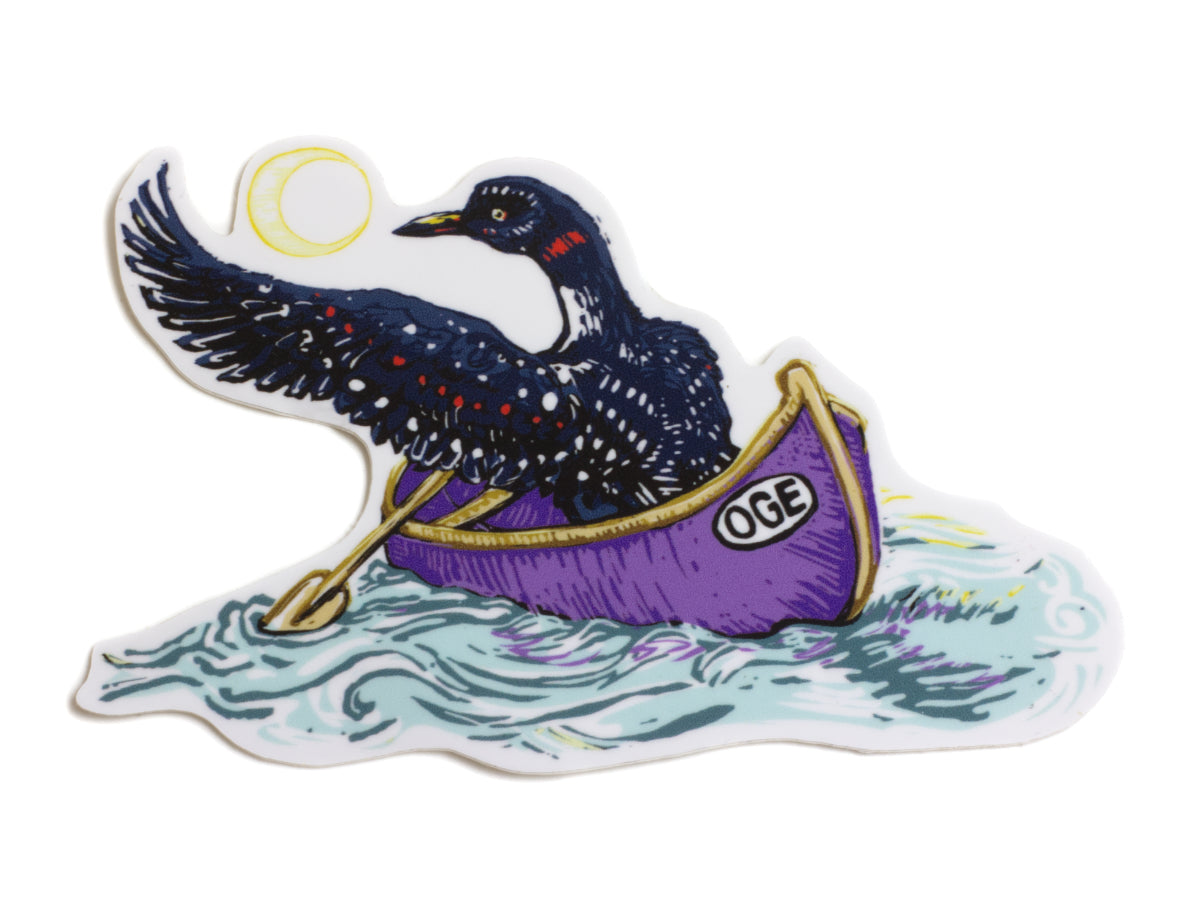 The Green Mountains of Vermont can yield a menagerie of sights, sounds and feelings. One is the crooning of the Loon. A phantom call fit to compliment the glow of moonlight, far from the trappings of industry. Enter our "Loon in a Canoe" sticker. A memento for those moments shared between you and those lakeside companions.