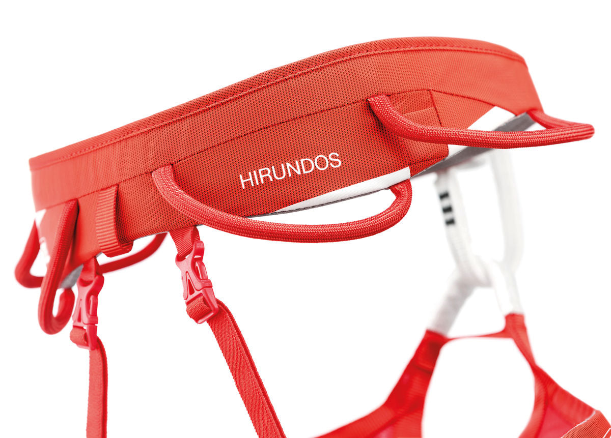 Lightweight and comfortable, the Hirundos harness is designed for performance climbing in the gym and at the crag. The sleek, slim design with elasticized leg loops offers complete freedom of movement with minimal weight. The four equipment loops provide sufficient space for the required equipment. The tie-in points are made of high-modulus polyethylene for improved resistance to rope friction and for greater durability of the harness.