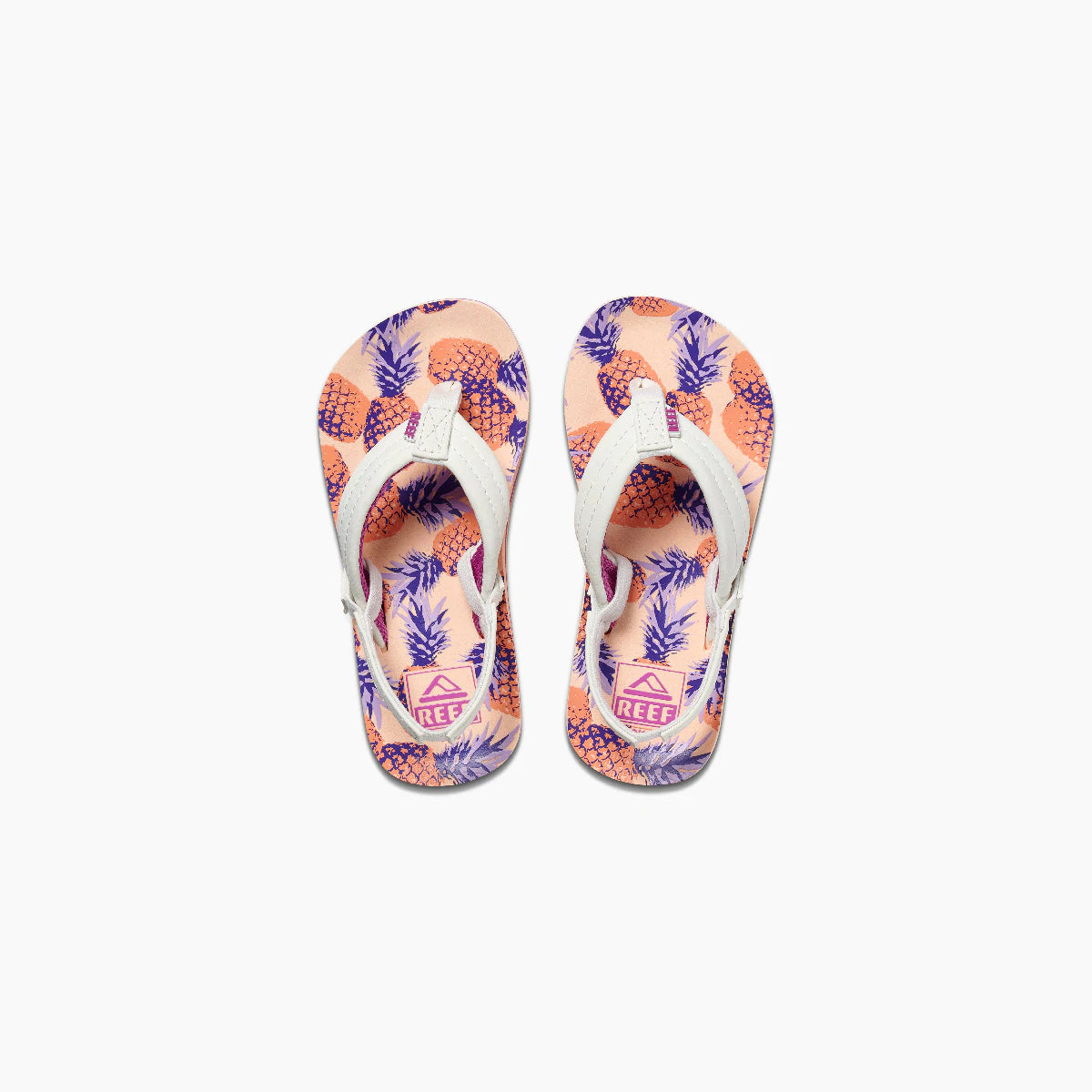 Whimsical and colorful, just like those perfect days on the water, milkshakes and sandcastles. The Little Ahi sandals feature a faux leather strap with soft polyester webbing lining for comfort, a printed contoured EVA footbed in four awesome styles, and a durable high density EVA outsole. Only sizes 3/4, 5/6, 7/8 and 9/10 come with a removable synthetic backstrap.