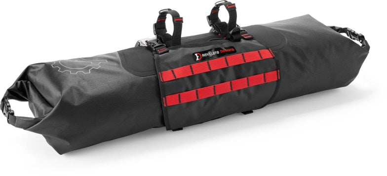 The 11 Liter Sweetroll® Bag is Revelate Designs' standalone, 100% waterproof, bikepacking handlebar bag. It's highly versatile with dual side roll-down closures that allow for a wide range of load carrying options. The modular front system integrates with their front pockets for additional storage. Sweetrolls are built with radio frequency welded seams.