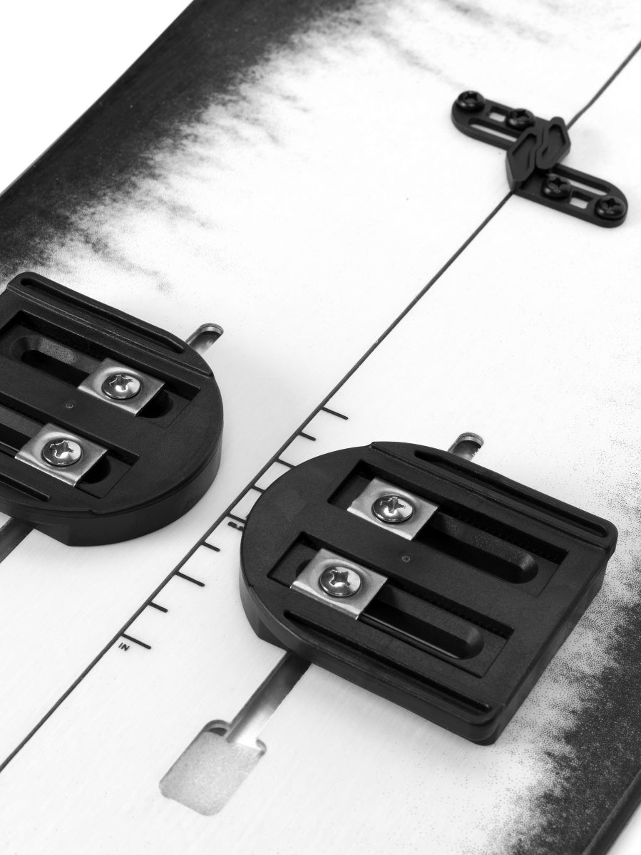 The SPLITPIG requires the use of a splitboard binding, or a kit that converts your standard binding into a splitboard binding. RIDE does not currently make a splitboard binding, but Vollé makes a kit that will allow you to use your RIDE binding on this splitboard. The SPLITPIG comes with a canted puck that will work with a number of splitboard bindings that normally require you to purchase the puck separately (Spark, Burton, Volle, K2). Other split bindings (Karakorum and Union) will not use the included puck (check with the manufacturer) but should come with all the equipment required to mount to the SPLITPIG.