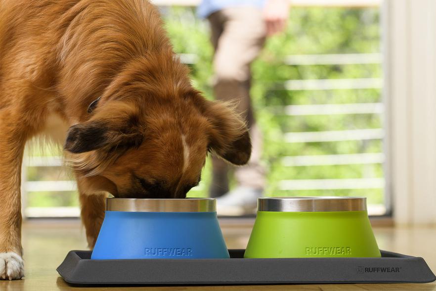 Adventures begin at basecamp. The Ruffwear Basecamp™ Mat offers your canine companion a place to refresh and refuel for the next venture to the mountains, river, or trail. This food and water bowl footprint has a TPE-coated grip base and sturdy walls that contain spills and withstand being stepped on by eager dogs. It fits two Basecamp™ Bowls side-by-side and features a topo-map design to inspire future outdoor explorations.