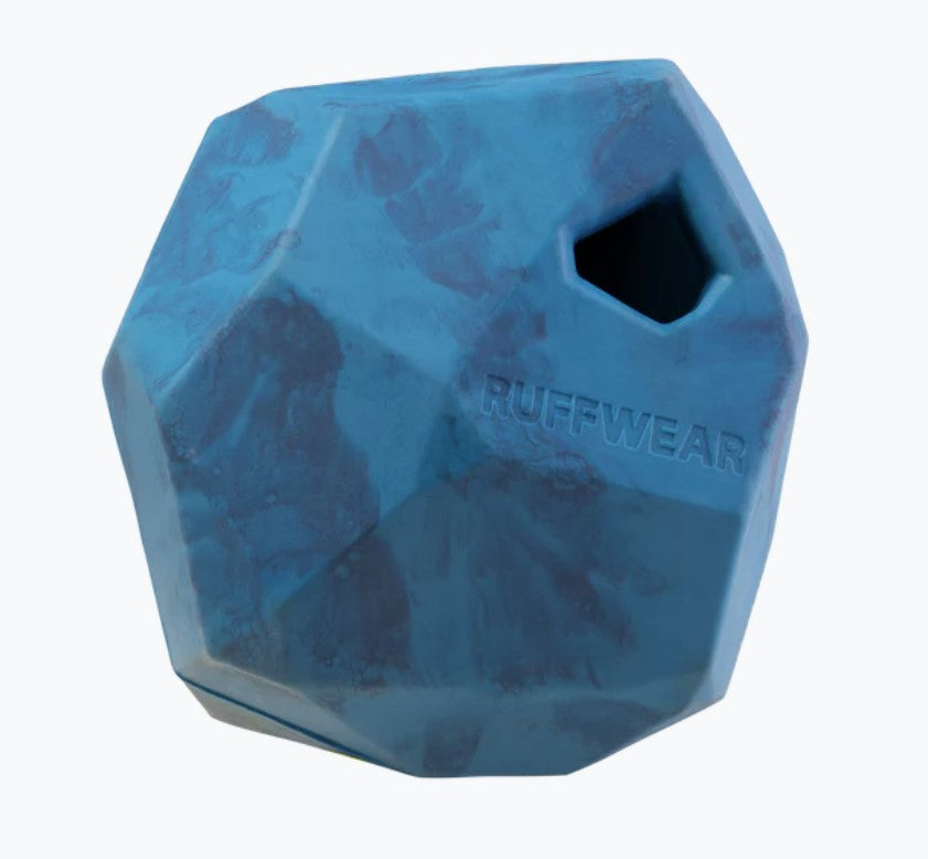 It may look like a piece of obsidian rock, but it's Ruffwear Gnawt-a-Rock – a durable throw toy inspired by natural volcanic glass formed by rapidly cooling lava from Pacific Northwest volcanoes. The Gnawt-a-Rock is made with natural latex rubber, a faceted surface, and an irregular shape. It all comes together to keep your pup guessing, whether chasing after its erratic bounce or nuzzling and nosing it around for interactive treat-dispensing to stimulate its mind.
