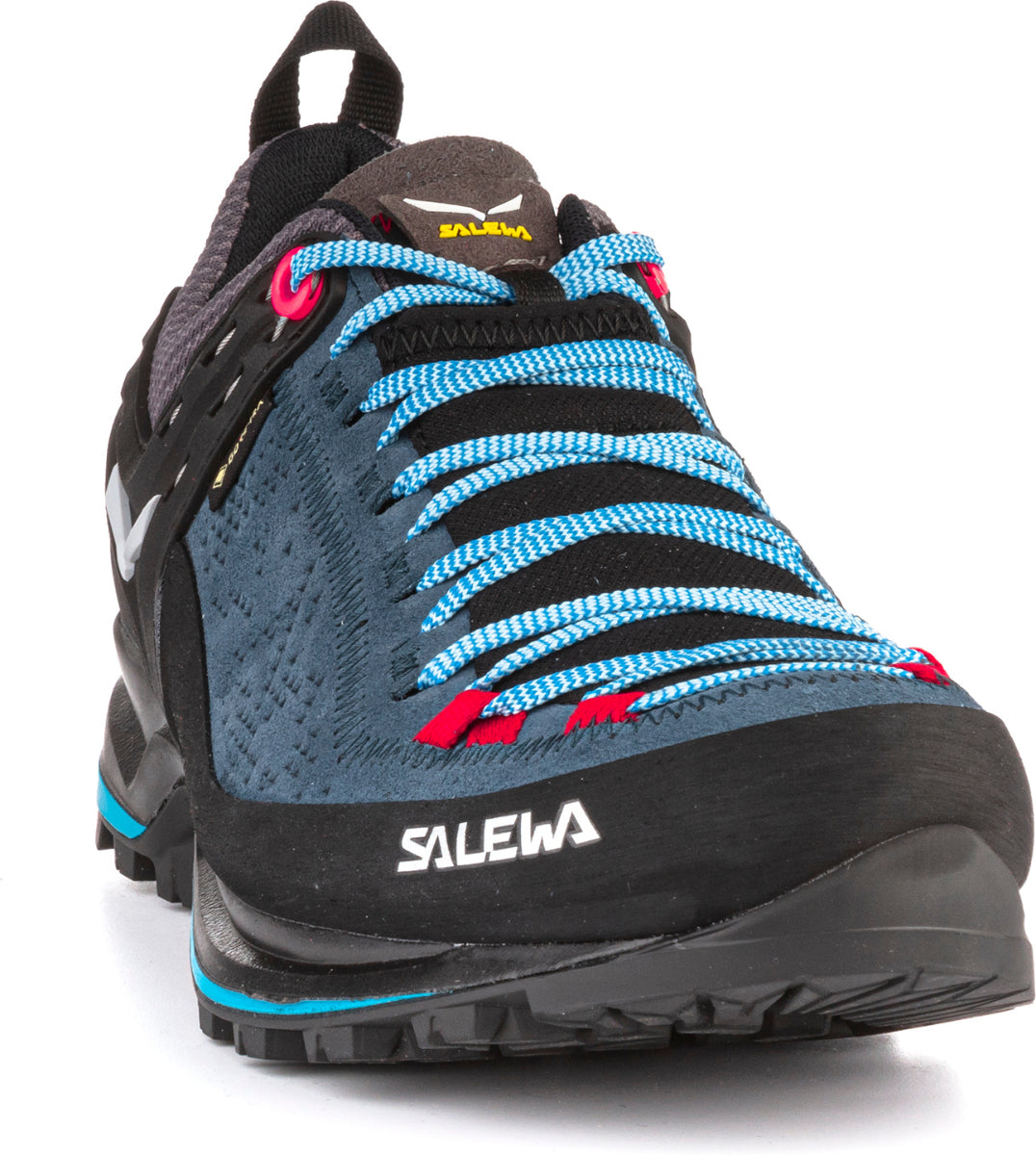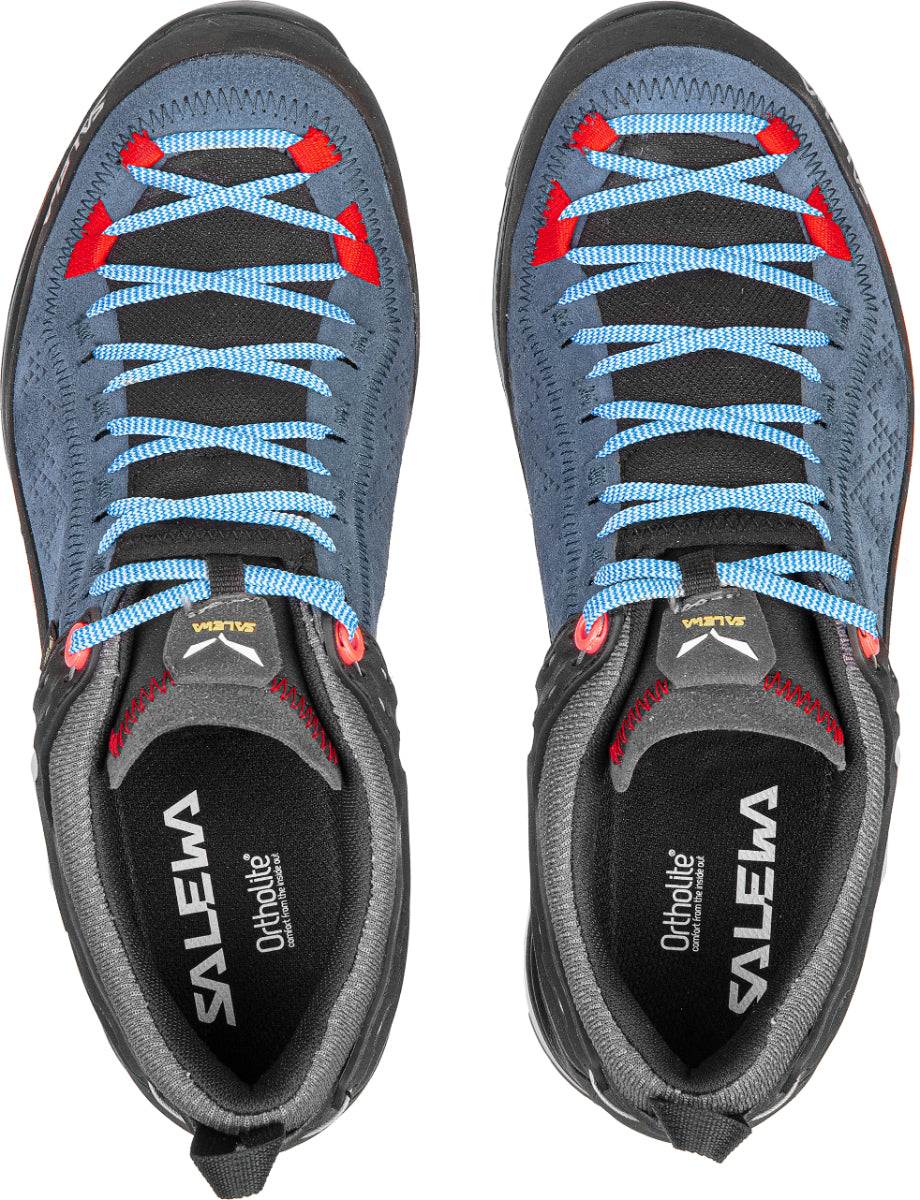 Comfortable, flexible and supportive – the Salewa MTN Trainer 2 is a versatile low-cut alpine approach shoe with a high-quality 1.6-millimetre suede leather upper and a Vibram outsole. Inside, the waterproof GORE-TEX® Extended Comfort membrane lets your feet breathe while protecting them from the elements and the soft textile lining fabric wicks moisture away for additional comfort. There is also a protective stretch gaiter under the laces to keep rain and groundwater out. Designed in Montebelluna, the cradle of alpine footwear craftsmanship, this shoe has a unique lasted construction that is 15% lighter than the original. The women's specific fit with contoured heel cups holds your feet comfortably in place and prevents slippage for more stability on descents. In addition, the expanded PU midsole provides long-lasting shock absorbency and rebound, helping decrease foot fatigue. Salewa also gives the high-quality upper a full 360° protective rubber rand for abrasion resistance and to protect your feet in rocky terrain. Underfoot, the multifunctional Vibram outsole gives agility and stability in rugged terrain. Its self-cleaning grooves and deep lugs guarantee a good grip on rock and scree and optimal traction on softer ground, such as mud or grass. It also benefits from a special via ferrata tread zone before the heel that ensures better grip on the iron ladder rungs of via ferratas. The women's MTN Trainer 2 also incorporates our proprietary 3F system for high flexibility, a more comfortable fit and greater support. With a cushioning OrthoLite foam footbed and climbing lacing that can be customized for technical terrain or casual use. The perfect solution for alpine trekking, scrambles, and approaches on a variety of surfaces and in all weather conditions.