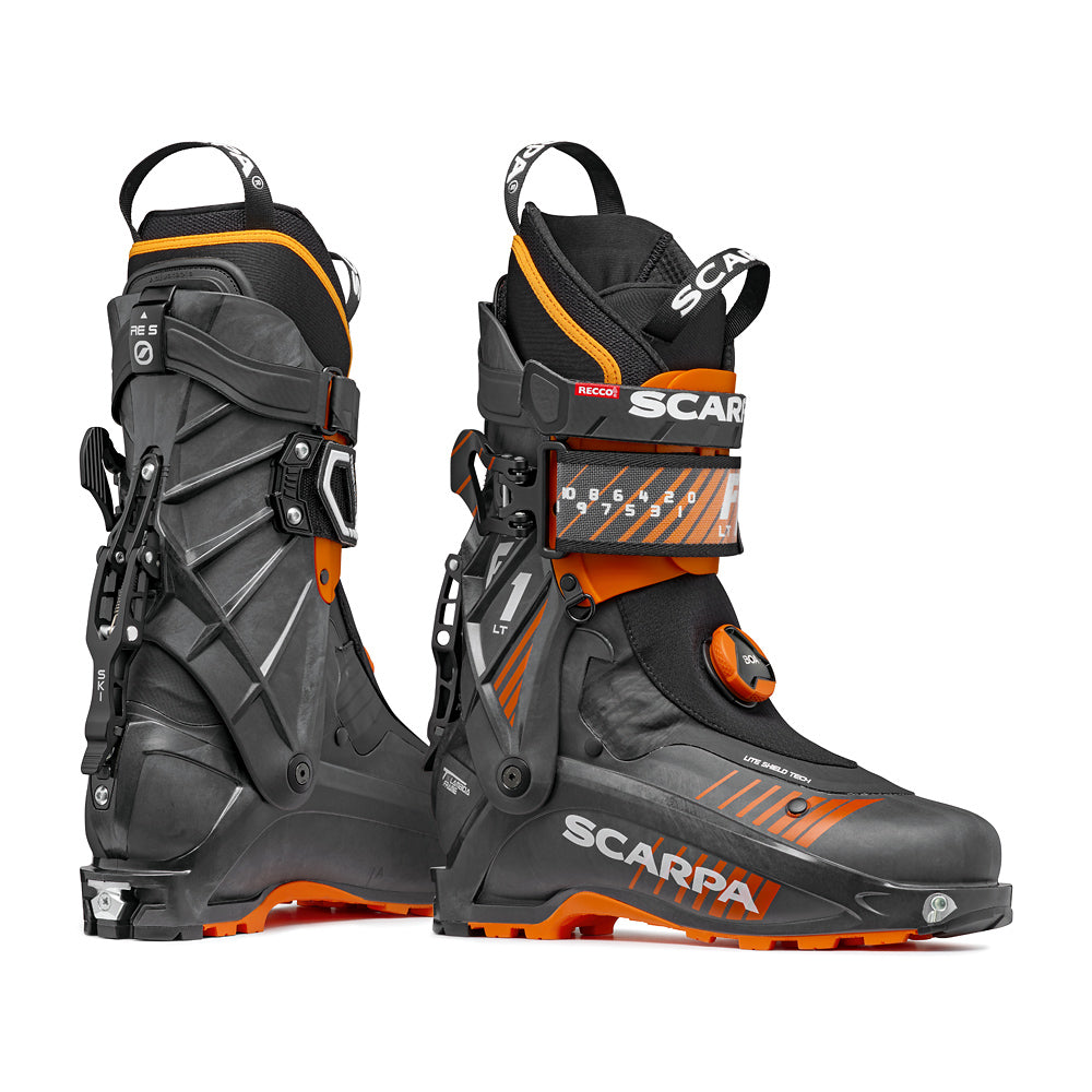Combining ultralight elements of the alien race boots with a more versatile, backcountry-oriented design, the all-new F1 LT is Scarpa's lightest weight alpine touring boot, optimized for high-mileage missions, ambitious traverses and technical ski mountaineering descents.
