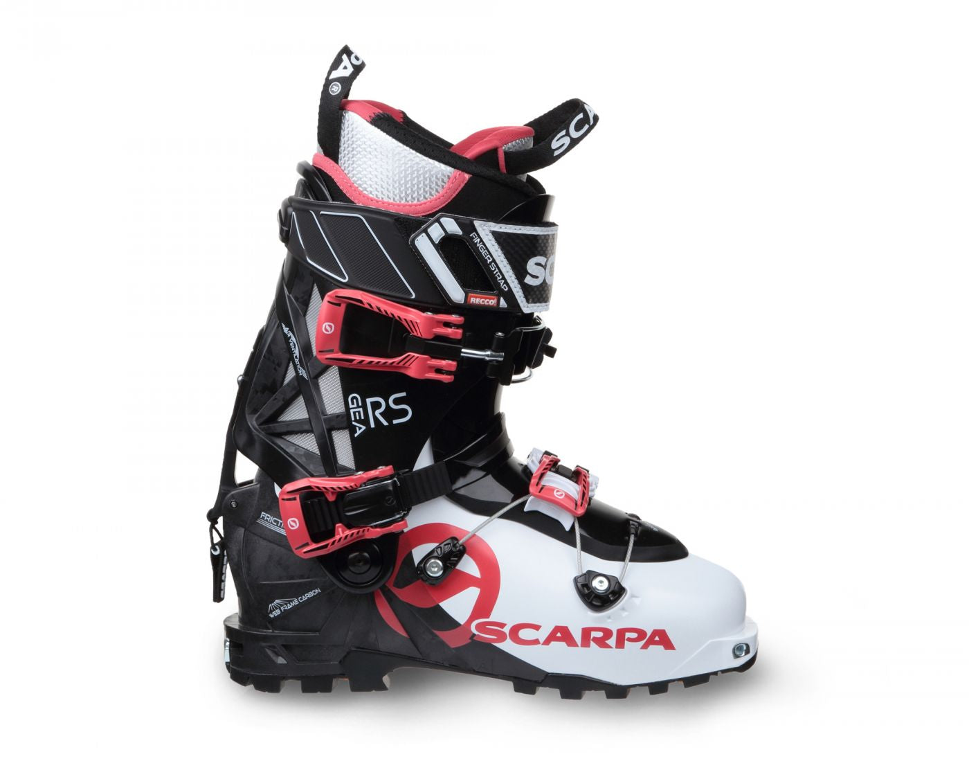 Scarpa's stiffest, most powerful women's-specific AT boot that elevates the intersection of freeride performance and backcountry functionality, the Gea RS features an innovative carbon infused Grilamid® shell to add power and rigidity without adding weight, as well as an all-new power strap featuring RECCO® Technology for increased avalanche searchability.