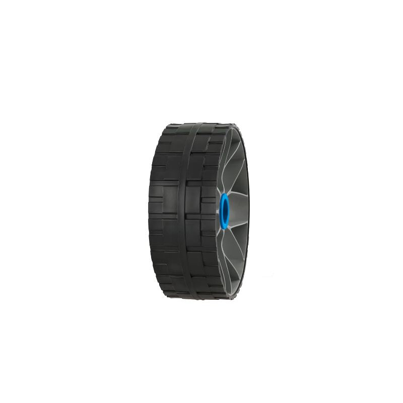 - Custom-molded wheels with thermoplastic rubber rolling surfaces