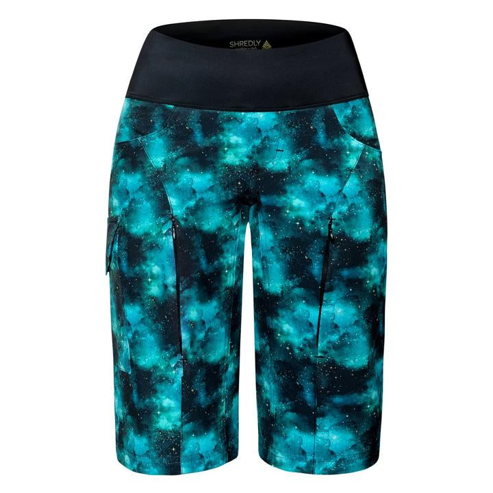 This style spans sizes 00-24 and welcomes even more shapes and sizes into the SHREDLY multi-sport and mountain bike short family. Specifically designed to comfortably accommodate you. Are your curves pear shaped? Hourglass? The opposite of hourglass? Shredly knows curves come in all different shapes and sizes so this is their most versatile short yet. It offers more accommodation through the hips and thighs (thank you, magical back panel) and a versatile waistband (thank you, comfy legging waistbands). This targets pesky gapping at the waist or offers stretchable comfort if you find that traditional waistbands feel restrictive. Shredly is so thrilled at how many lovely figures this short is fitting…COMFORTABLY! If you find their original shorts (MULTI, MTB SHORT and LONG) to be too straight/slim fitting, tight in the thighs, or gapping too much at the waist – this short was designed for you!