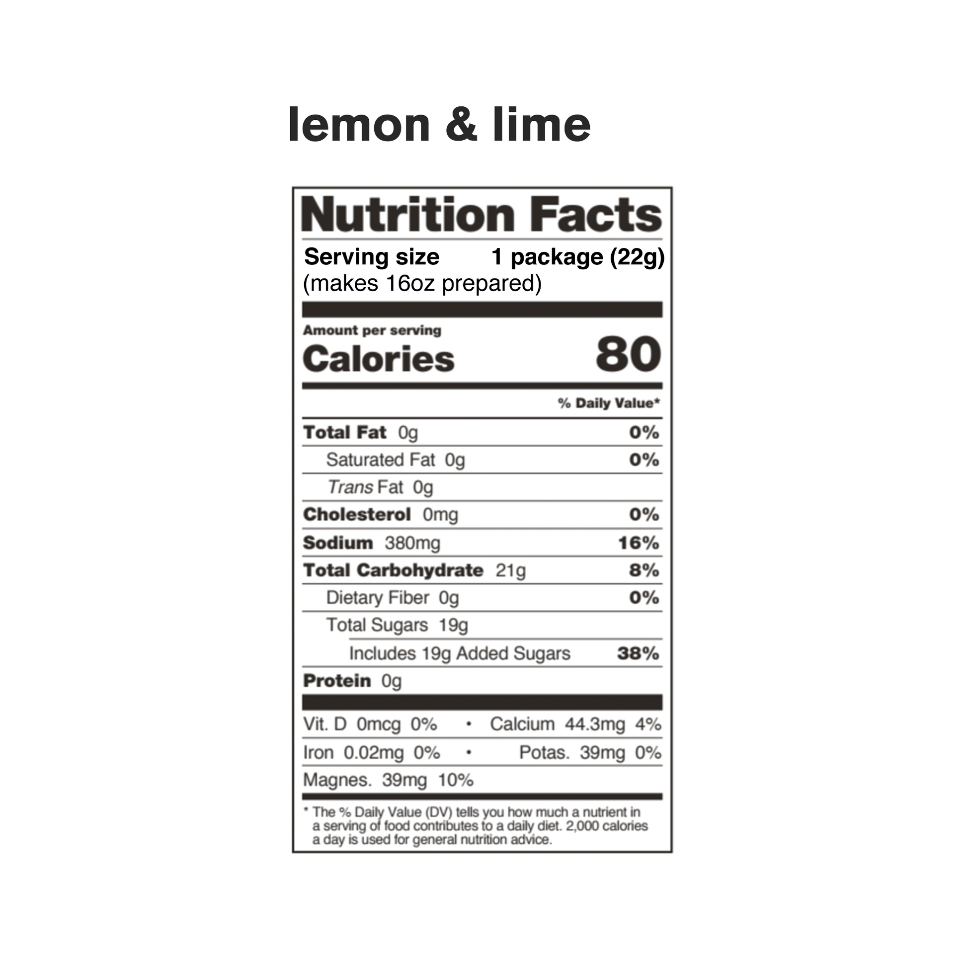 - Lemon & Lime: Cane Sugar, Dextrose, Sodium Citrate, Citric Acid, Magnesium Lactate, Calcium Citrate, Potassium Citrate, Lemon Oil, Lime Oil, Lemon Juice, Lime Juice, Ascorbic Acid (Vitamin C).—Verified Non-GMO, Gluten Free, Dairy Free, Vegan and Kosher