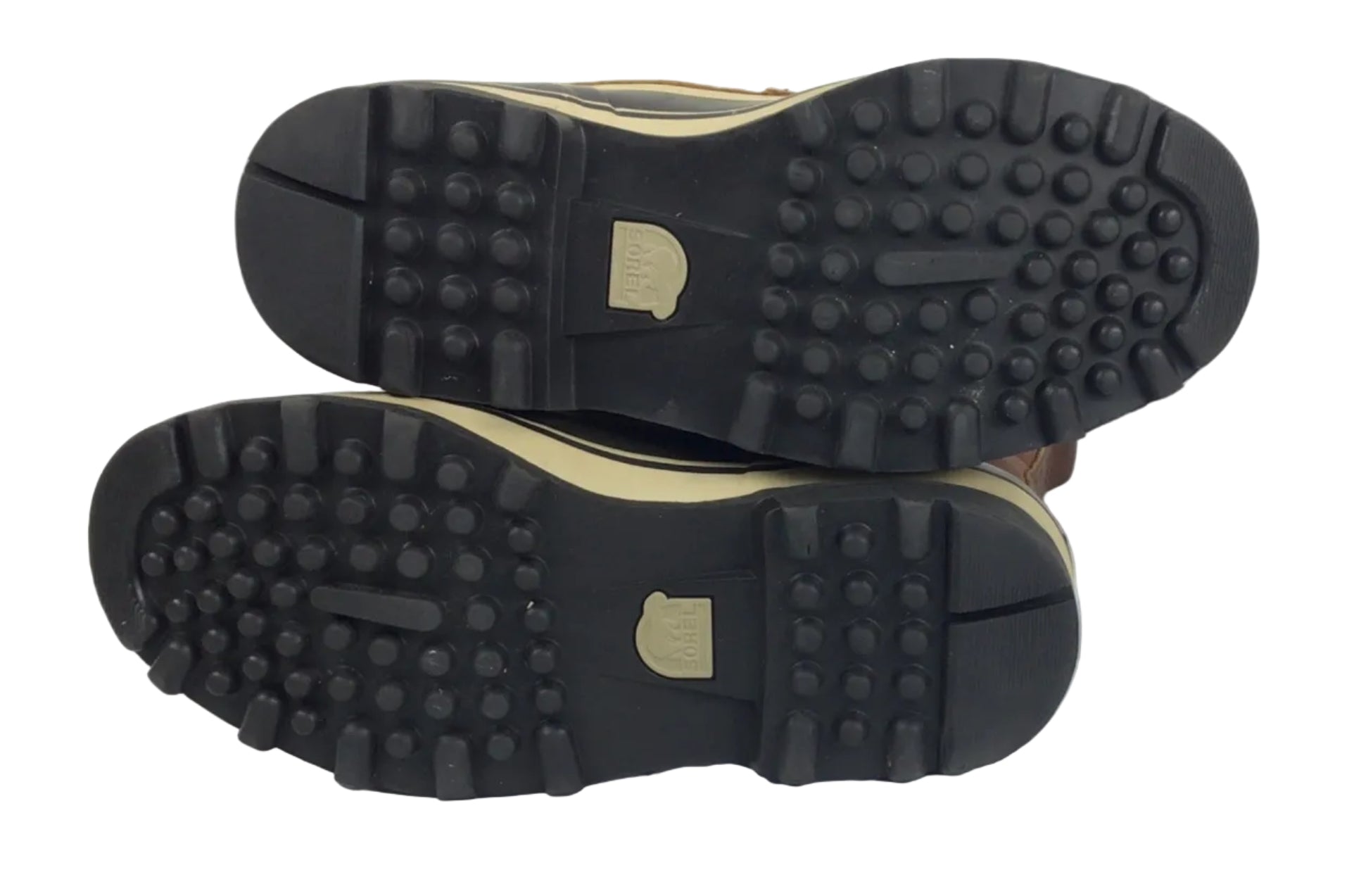 Sorel Caribou boots deliver serious winter performance. Excellent insulation keeps your feet warm in extreme cold, with only minor cosmetic wear—slight fleece liner softening and surface scuffs on leather. A seasoned pair in Men's size 12, ready for your next expedition.