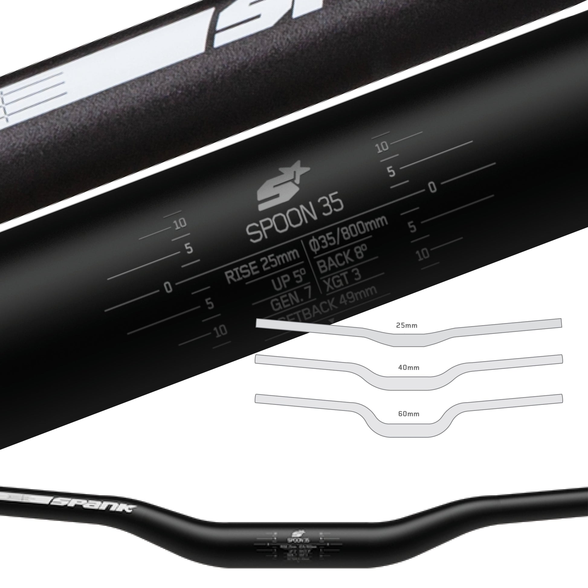 A Spank quality 35mm handlebar that won't cost you an arm and leg? Freeride-inspired all mountain geometry makes the bar extremely versatile, and the Spoon 35 is rock-solid whether you live for trails or bike parks. 800mm wide, you can dial your fit as the Spoon 35 is adjustable to 740mm.
