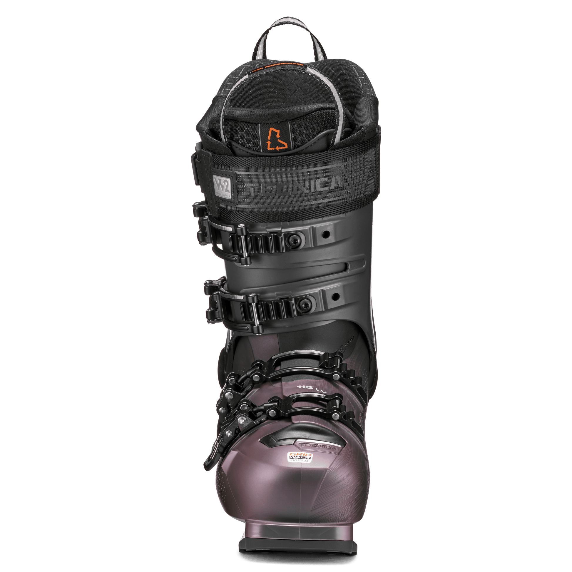For women who know how to drive a ski, our Mach 1 LV 115 W is your engine. The stiff flex and rear carbon T-Drive 2.0 offer instant power and precision the moment you pressure your shin. Its low-volume fit is also remarkably easy to get on and off, and its women’s specific fit is comfy and highly customizable. Buckle up and mash on the gas.