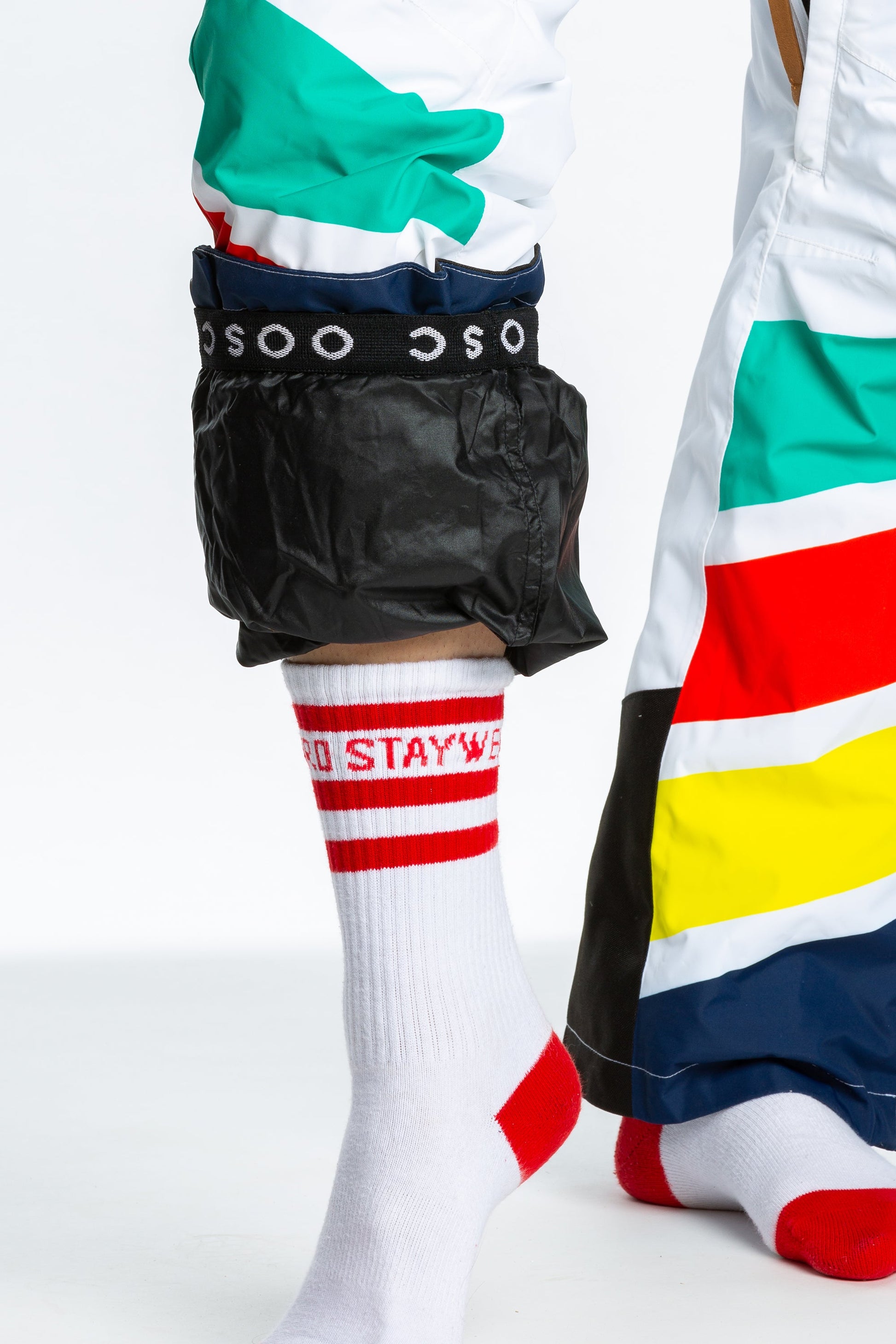The Mogul Maniac | White Retro Striped Women's One Piece Ski Suit