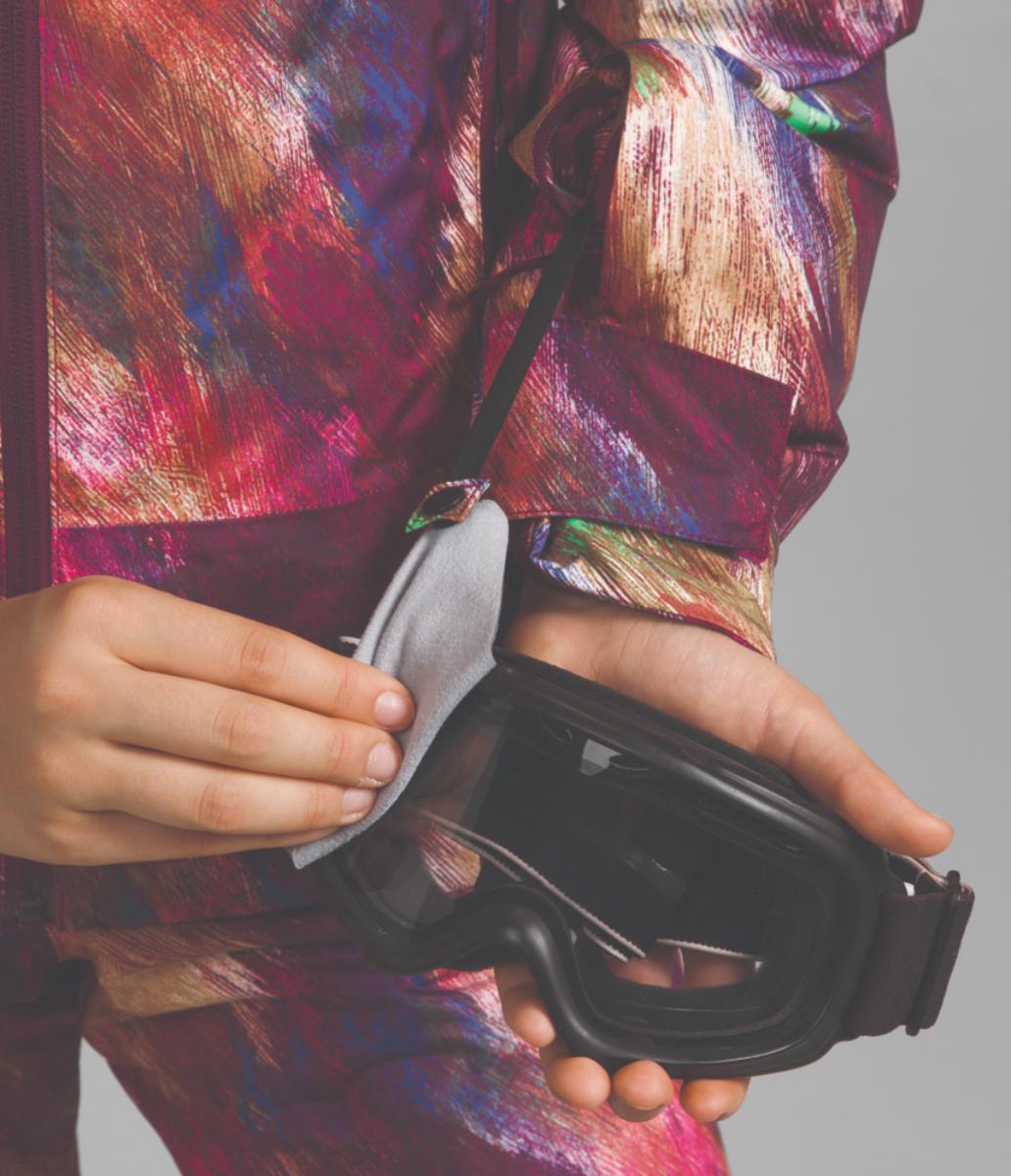 The newly updated waterproof Girls' Freedom Insulated Jacket features a powder skirt, helmet-compatible hood and secure-zip pockets to keep snacks safe. This jacket also helps prevent lost gloves with The North Face's new Glove Keeper system (compatible with the Montana Glove line).