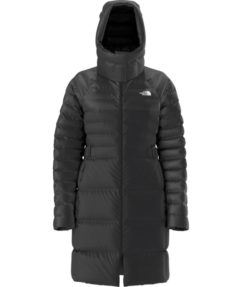 The longline Ruby Parka lined in 600-fill-power down has a removable hood and handy pockets to keep you and your essentials warm and cozy.